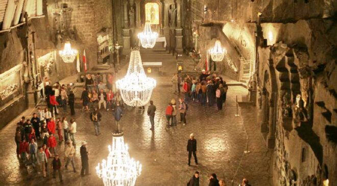 Kopalnia Soli w Wieliczce, wpisana na listę UNESCO, to podziemne miasto z kaplicami wyrzeźbionymi w soli – od XIII wieku wydobywano tu „białe złoto”. Schodząc 135 m korytarzami, mijamy jeziora solne i podziemne jeziora, a w kaplicy św. Kingi modlą się turyści przy ołtarzu z solnych kryształków. Trasa turystyczna z rzeźbami legend pokazuje geniusz górników-sztukarzy. Podziemne muzeum soli edukuje o historii górnictwa, a nocne koncerty w salach tworzą magię. To cud natury i pracy ludzkich rąk, zaledwie 15 km od Krakowa.