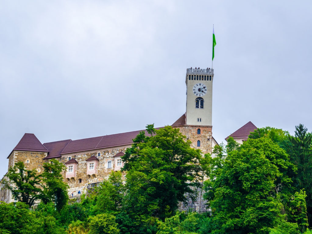 Dominujący nad miastem zamek to wizytówka stolicy z klimatycznymi dziedzińcami. Można wejść pieszo (krótkie, ale strome podejście) lub wjechać kolejką linową z centrum. Z zamku można napawac się panoramą miasta oraz Alp Kamnickich. Dodatkowo warto odwiedzić umiejscowiona w zamku Muzeum Historii Słowenii, a także wejść na Wieżę strażniczą. To miejsce tętniące wydarzeniami.